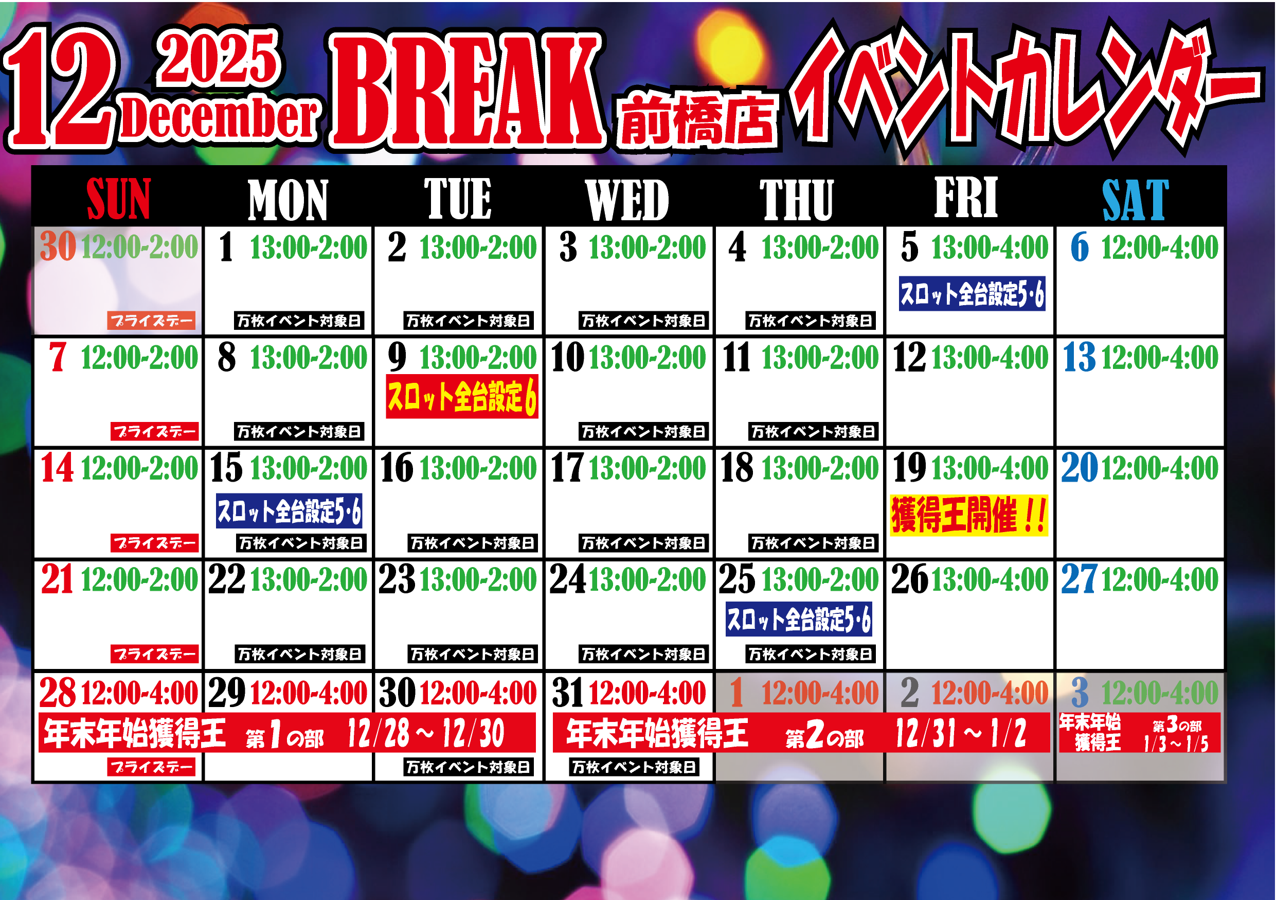 スマスロ絶賛稼働中! 初代完全復活! その幻想をぶち壊す! アルティメットループが究極進化! 炎炎の炎に帰せ この革命が、全てを覆す 究極Vモンキーを決めろ! 大冒険が今、幕を開ける! 乱世の怒りが北斗(オレ)を呼ぶ! 小役カウンターを置ける親切設計! 【VerUP】麻雀格闘倶楽部 UNION【稼働中】 MHイベント 韋駄天杯開催中!! 【麻雀格闘倶楽部】 月間クラブスコアランキング イベント開催中!! MHイベント 韋駄天杯結果発表!! 《獲得王結果はこちら!!》 BREAK前橋店荒牧町にて営業!!
